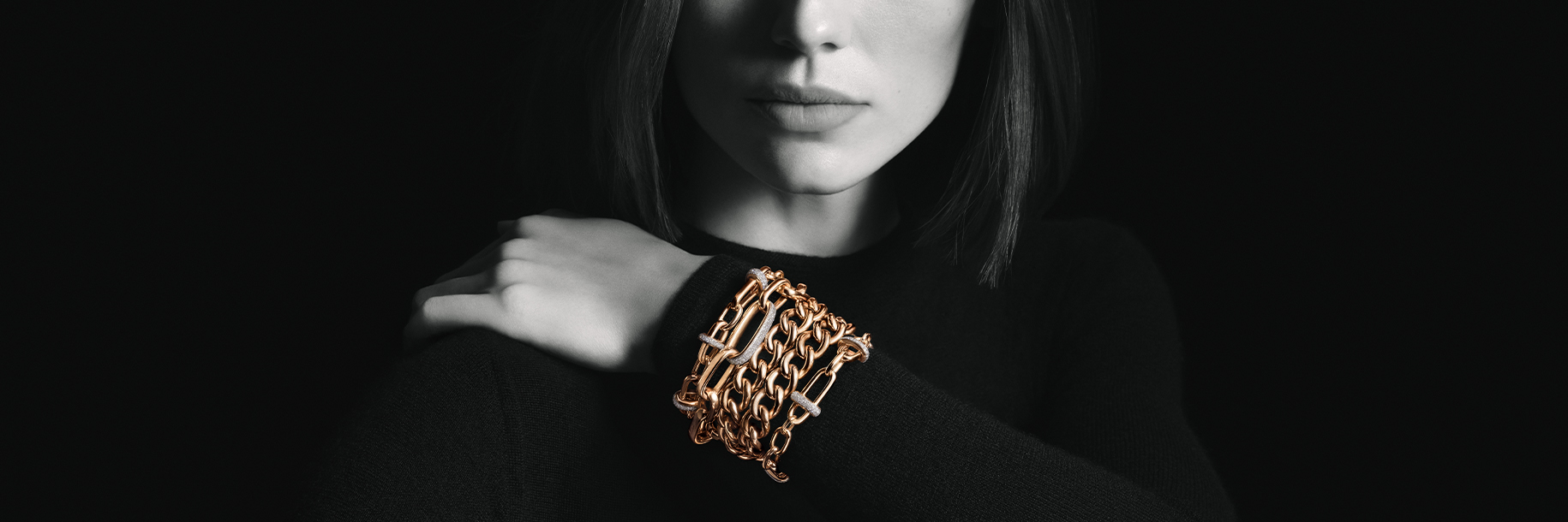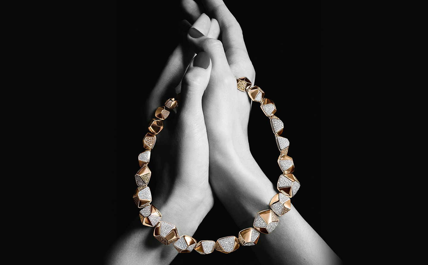 以建筑美学,诠释先锋格调。玫瑰金与钻石打造的几何五角链节,构筑出吸睛瞩目的项链作品。线条利落,风格现代,态度鲜明 —— 这不仅是一件珠宝,更是一尊彰显个性的艺术雕塑。