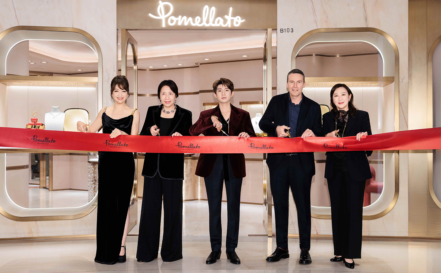 Pomellato宝曼兰朵上海恒隆广场精品店以焕新之姿,揭开品牌对精品店全新构想的神秘面纱。这是品牌在奢侈品零售设计领域的一次创意探索与大胆革新,率先于上海和洛杉矶两地得以落地实践。 在现场媒体及众多嘉宾的见证下,Pomellato宝曼兰朵首席营销与产品官鲍里斯·巴博尼(Boris Barboni)、开云集团大中华区总裁蔡金青、Pomellato宝曼兰朵亚太区总裁杨怿、恒隆地产内地业务董事张琳娜以及Pomellato宝曼兰朵全球品牌代言人王源一同出席了剪彩仪式。