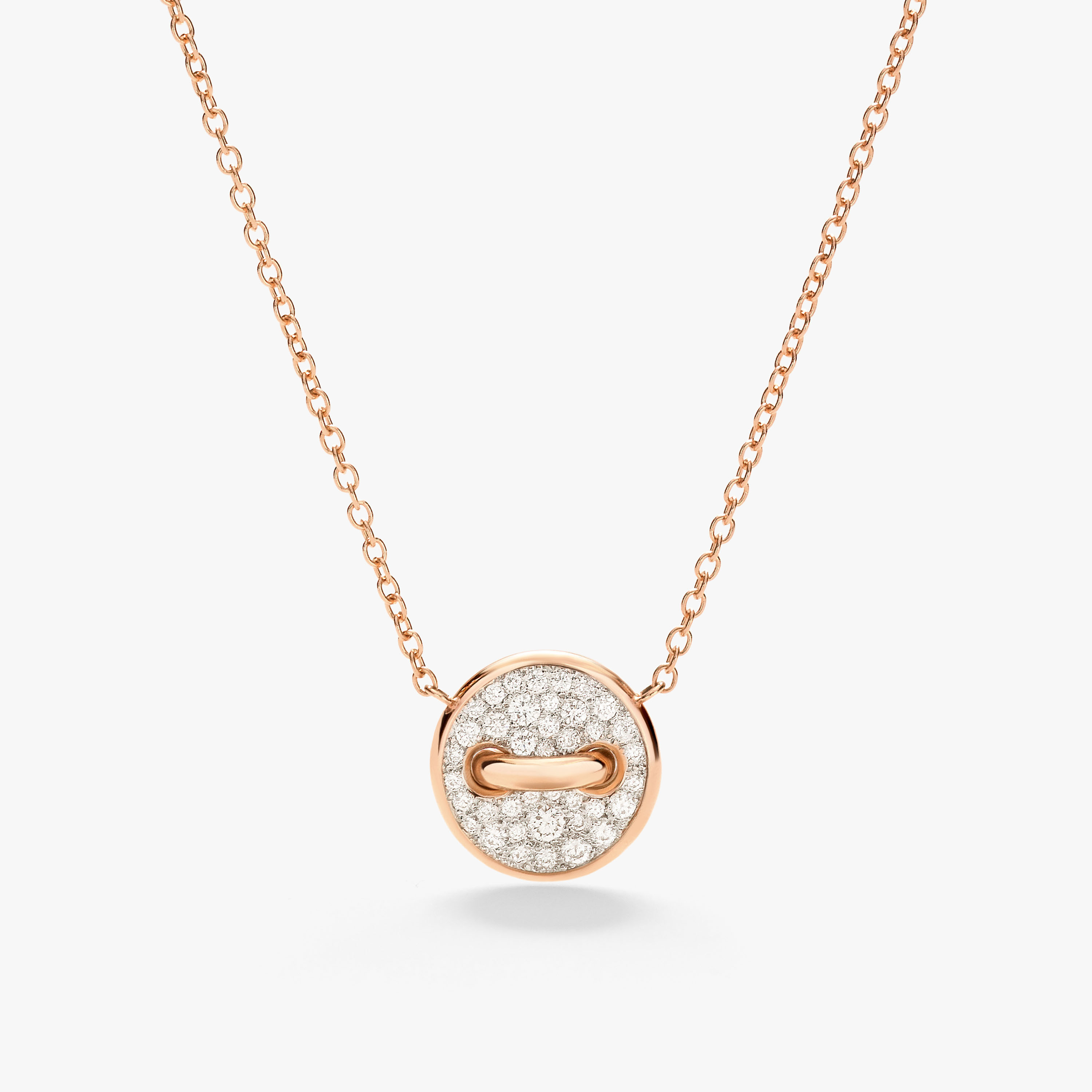 18K玫瑰金吊坠项链,白色镀铑18K玫瑰金上镶嵌39颗白钻(≈0.4克拉),点缀1颗白色珍珠贝(≈1.6克拉)
