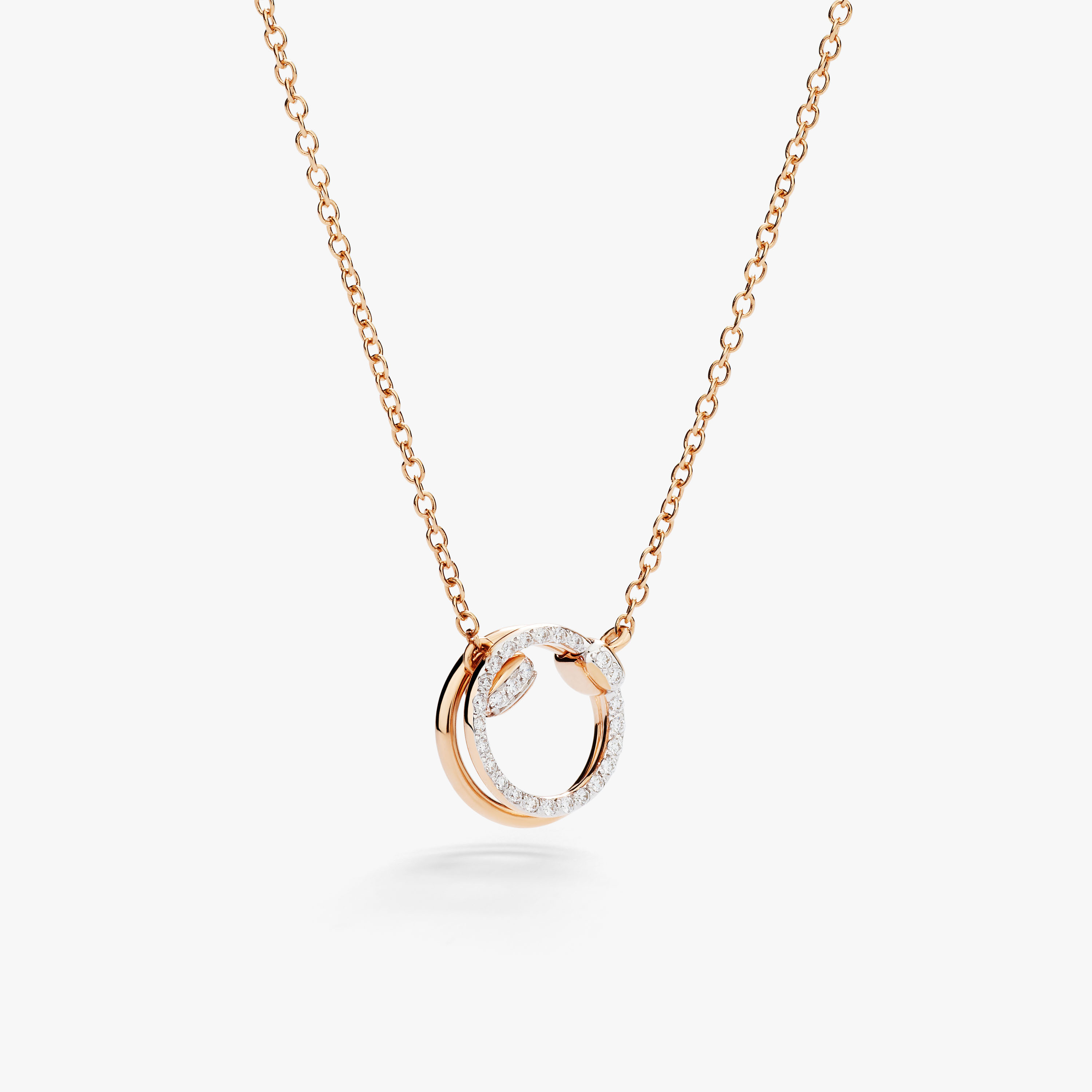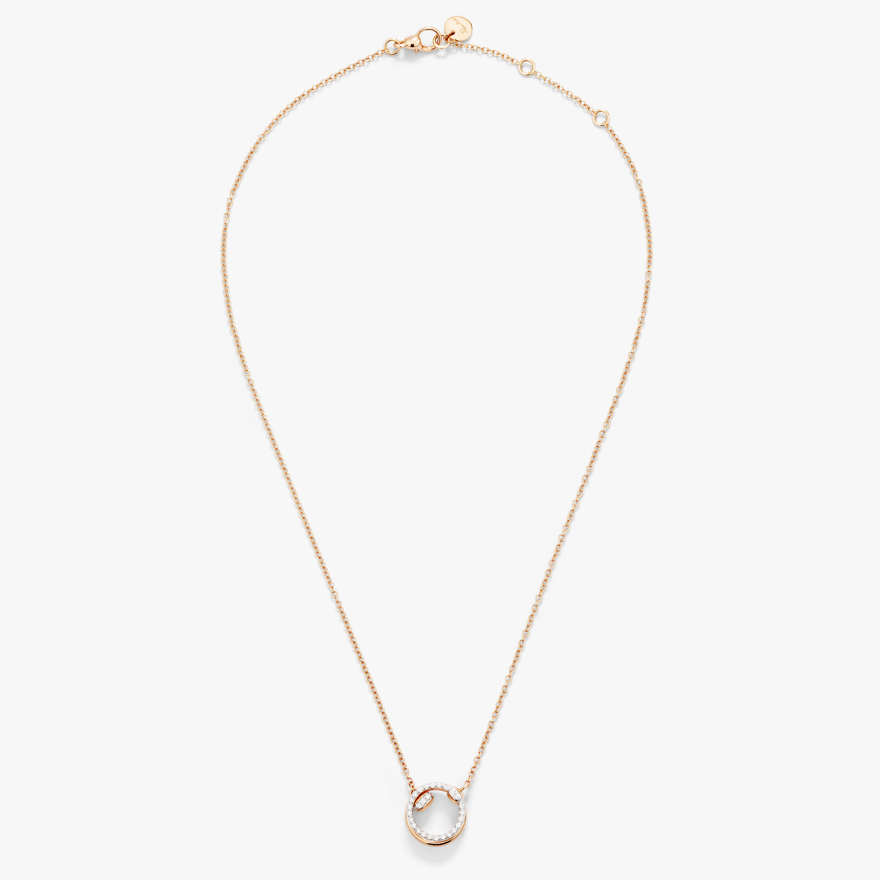 18K玫瑰金吊坠项链,搭配18K白色铑金电镀玫瑰金镶嵌36颗白钻(约0.2克拉)。