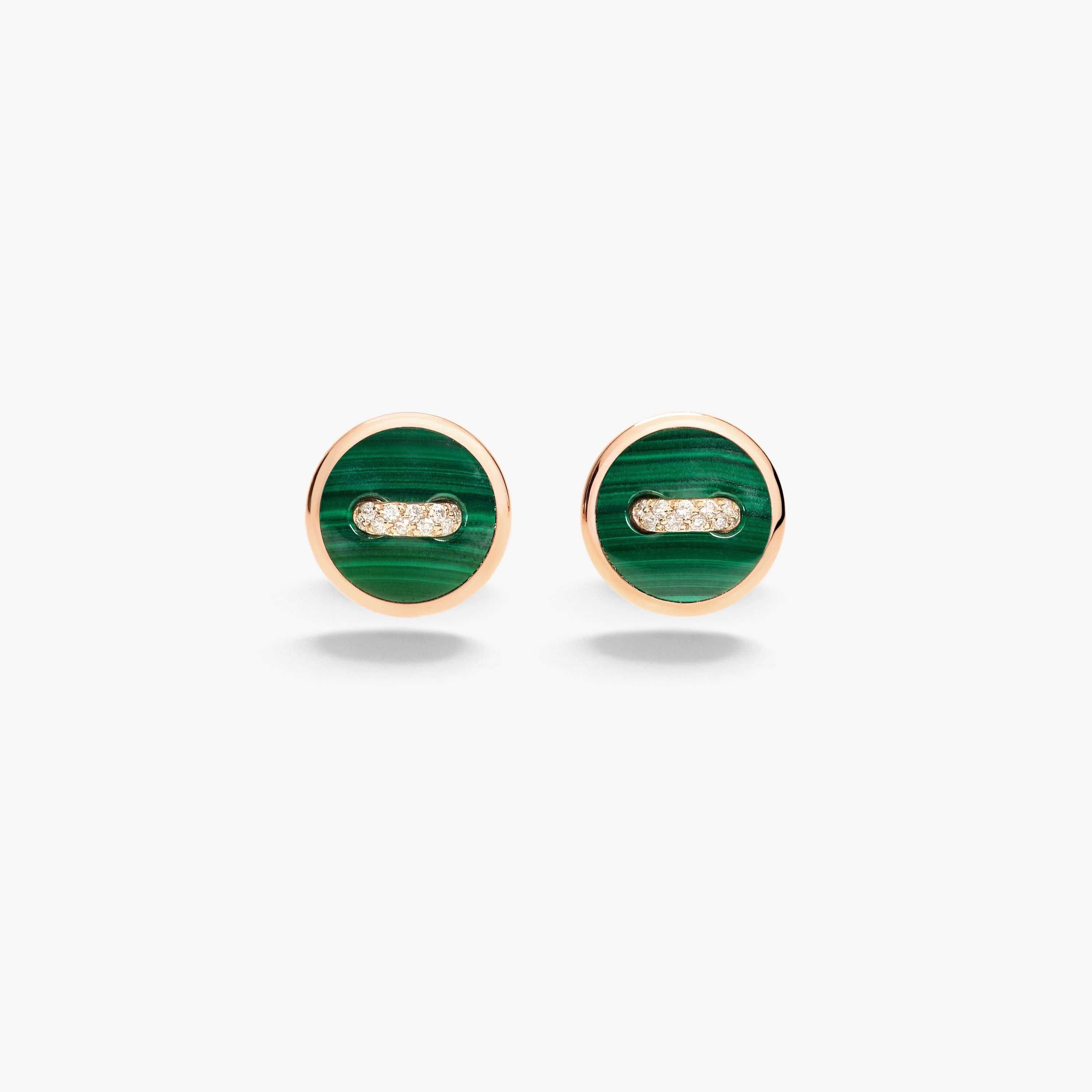 18K玫瑰金耳环,镶嵌2颗孔雀石(≈3克拉)、20颗白钻(≈0.07克拉)